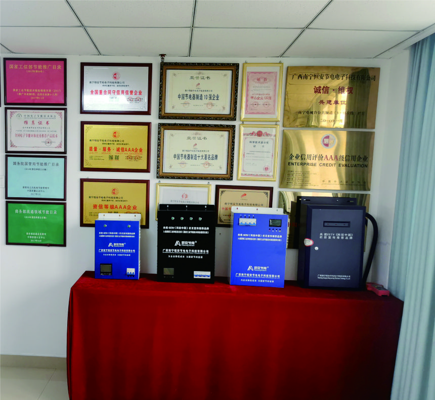 公司生產(chǎn)的節(jié)電器展示